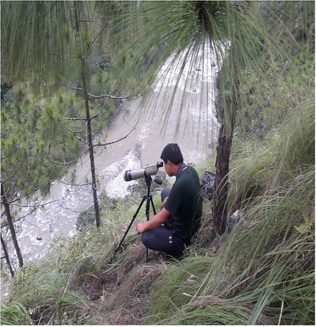 We chose riparian forest which is the mixed vegetation between 50-500m from the nearest river bank falling within the Tsirang district. A distance of ~ 100-800m maintained between two Camera traps. Camera traps were set up in the failed, abandoned natural nests, and artificial nests. Artificial nests were made to resemble like the natural nests as much as possible (Khandu et. al, 2018; awaiting publication). Each nest was baited with 2 chicken egg which is colored light blue to resemble like the WBH's egg and 1 uncolored chicken egg. The camera traps were monitored every two weeks.